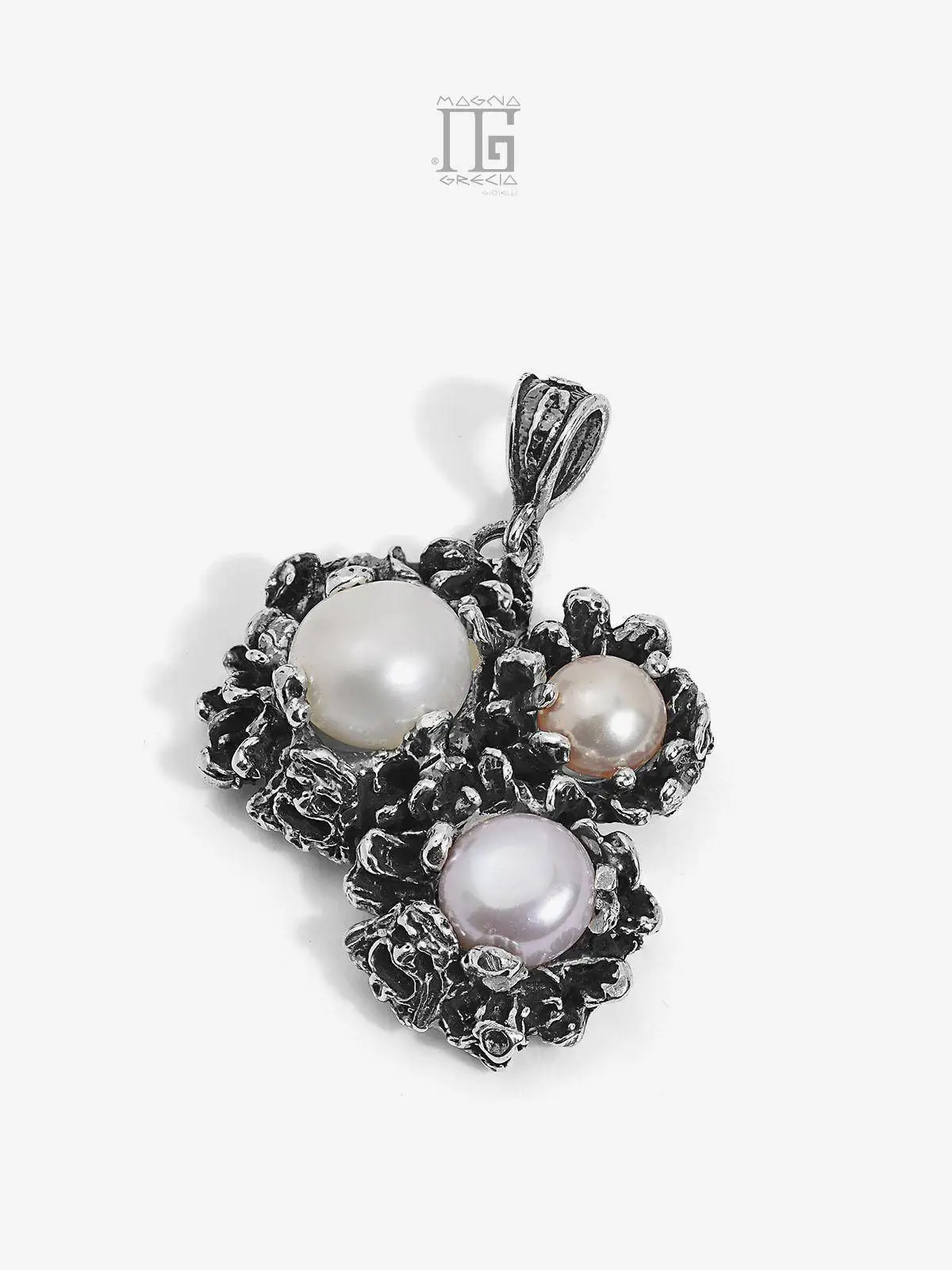Pendente in Argento 925 con Maschere Apotropaiche e Perle Naturali Acqua Dolce Lilla 7-7/5 mm, Bianca 9-9/5 mm e Rosa 10/5-11 mm